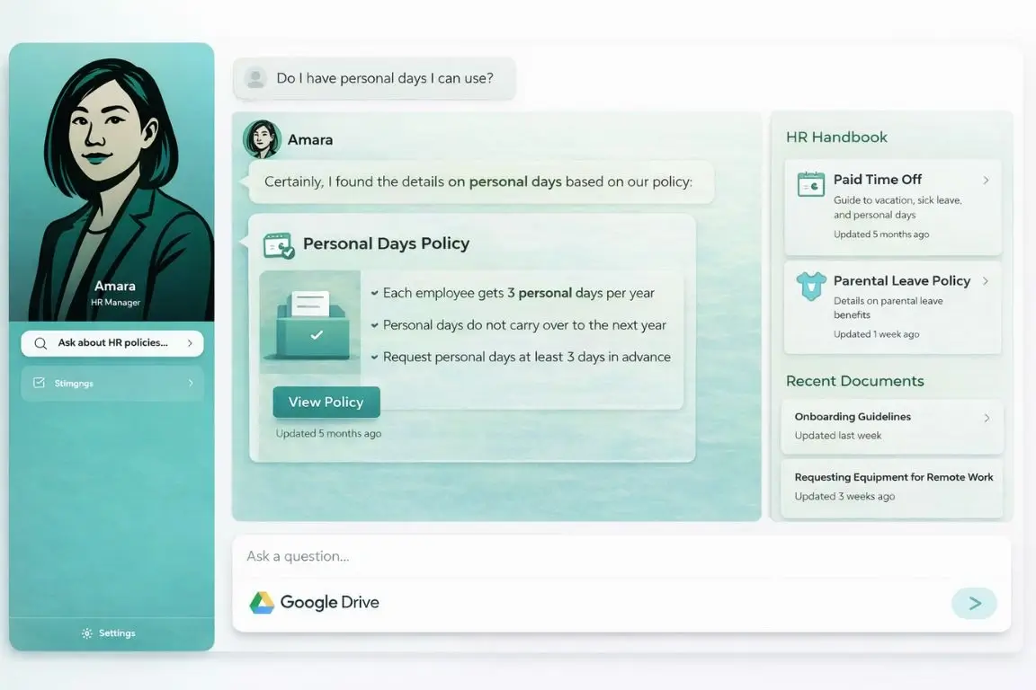 Google Drive, Notion, Confluence, SharePoint, Slack, Microsoft Teams, Workday, BambooHR, SAP, Jira